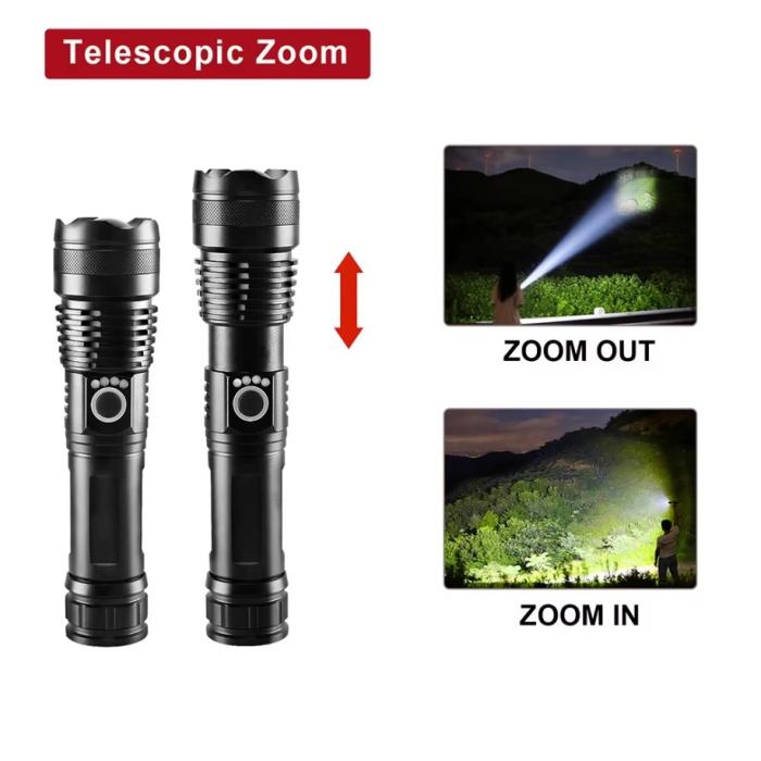 পরিসীমা: 300-500 মিটার• জুম মোড: টেলিস্কোপিক জুম• সুইচ মোড: 5 মোড (উচ্চ - মাঝারি - নিম্ন - SOS - ফ্ল্যাশ)• ব্যাটারির ধরন: 18650, 5500mAh, 3.7V li-ion• আলোর সময়: 2-6 ঘন্টা • ওয়াটারপ্রুফ লেভেল: IPX-6• শরীরের রঙ: কালো• উপাদান: T6063-T6 এভিয়েশন অ্যালুমিনিয়াম• সাইজ: 16.8cm * 4cm * 3.3cm• টর্চ নেট ওজন: 0.207kg• রিচার্জেবল: কম্পিউটার USB, কার USB, USB এর জন্য মাইক্রো USB চার্জিং প্লাগ এবং ব্যাটারি * আকার: 7.5" পণ্য বৈশিষ্ট্য